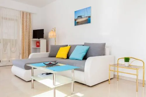 Więcej informacji o Meerblick mit TraumterrasseRobinson Olive Tree Huts oferuje gościnne pokoje w otoczeniu oliwnych drzew, zapewniając również bezpłatny parking dla wszystkich gości. W pobliżu znajdują się liczne atrakcje i miejsca warte odwiedzenia. Plaża Ziarna jest dostępna już po 10 minutach jazdy samochodem, co stanowi idealną opcję na relaks przy morzu.