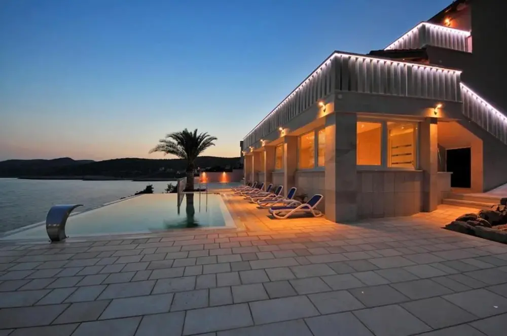 Vila Hera w Korčuli oferuje wyjątkową lokalizację bezpośrednio przy morzu z prywatnym basenem i dostępem do własnej plaży, idealną dla grup nawet ośmiu osób. Goście mogą korzystać z rodziny pokoi oraz baru na terenie posesji, podczas gdy bezpłatny parking zapewnia dodatkowe wygodę.